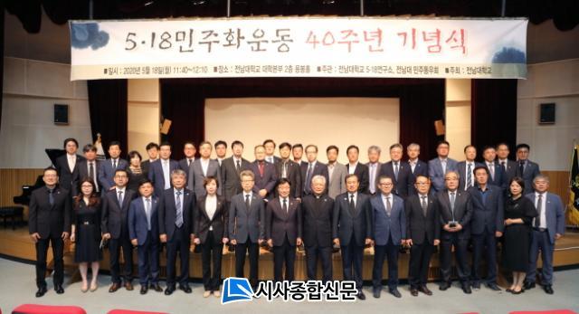 Àü³²´ë 5.18¿¬±¸¼Ò¿Í Àü³²´ë¹ÎÁÖµ¿¿ìȸ°¡ °øµ¿ ÁÖ°üÇÑ À̳¯ ±â³ä½Ä¿¡´Â Á¤º´¼® ÃÑÀå°ú ¹Ú½ÂÇö Ãѵ¿Ã¢È¸ÀåÀ» ºñ·ÔÇÑ ±³Á÷¿ø, Çлý°ú ÃÖ Ã¶ Àü³²´ë ¹ÎÁÖµ¿¿ìȸÀå°ú ȸ¿ø µî 200¿©¸íÀÌ Âü¼®ÇØ 5.18 40ÁÖ³âÀ» ±â³äÇß´Ù.
