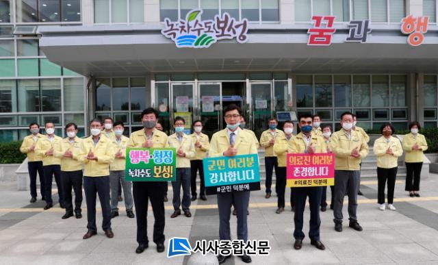 [½Ã»çÁ¾ÇսŹ® = ¿À½ÂÅà ±âÀÚ] ±èö¿ì º¸¼º±º¼ö(¾ÕÁÙ °¡¿îµ¥)°¡ 19ÀÏ º¸¼º±ºÃ»»ç ±¤Àå¿¡¼ Äڷγª19 ±Øº¹À» À§ÇØ Çå½ÅÇÏ´Â ÀÇ·áÁøÀ» °Ý·ÁÇϰí ÀÀ¿øÇÏ´Â ¡®´öºÐ¿¡ 縰Áö¡¯ Ä·ÆäÀο¡ Âü¿©Çß´Ù.