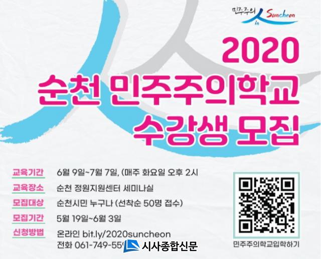 ¿ÃÇØ óÀ½À¸·Î ¿î¿µÇÏ´Â ¡®¼øÃµ ¹ÎÁÖÁÖÀÇ Çб³¡¯´Â ¼ÒÅë°ú Çù·ÂÀ¸·Î ¹ÎÁÖ ½Ã¹ÎÀÇ½Ä Çâ»óÀ» À§ÇÑ ÇÁ·Î±×·¥À¸·Î °ÀÇ´Â 6¿ù 9ÀϺÎÅÍ 7¿ù 7ÀϱîÁö ¸ÅÁÖ È¿äÀÏ ¿ÀÈÄ 2½Ã Á¤¿øÁö¿ø¼¾ÅÍ ¼¼¹Ì³ª½Ç¿¡¼ ÁøÇàµÈ´Ù.