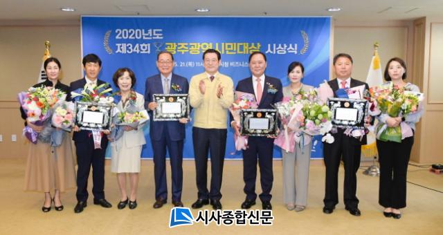 34ȸ ±¤Áֽùδë»ó ¼ö»óÀÚ´Â »çȸºÀ»çºÎ¹® ±¸Á¦±æ ¼¼Á¾ÀÇ·áÀç´Ü ÀÌ»çÀå, ¿¹¼úºÎ¹® ÀÓ¿ø½Ä Çѱ¹¿¹ÃÑ ±¤ÁÖ±¤¿ª½Ã¿¬ÇÕȸ ȸÀå, üÀ°ºÎ¹® È«¼º±æ ±¤ÁÖ±¤¿ª½Ã ¹èµå¹ÎÅÏÇùȸ ȸÀå, Áö¿ª°æÁ¦ºÎ¹® ÀÌ¿ë¹ü ¢ßÇÁ·ÎÅØ ¹× ¢ß¿ÉÅä´Ð½º ´ëÇ¥ÀÌ»ç ÀÌ´Ù.