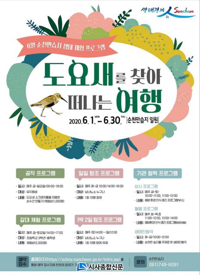 ÇÑÆí, üÇè ÇÁ·Î±×·¥Àº ȨÆäÀÌÁö¿¡¼ »çÀü¿¹¾à ÈÄ Âü¿© °¡´ÉÇÏ¸ç ¼¼ºÎ ³»¿ëÀº ¼øÃµ¸¸ ½ÀÁö ȨÆäÀÌÁö(https://scbay.suncheon.go.kr/intro.jsp)¸¦ ÅëÇØ È®ÀÎÇÒ ¼ö ÀÖ´Ù. ÀÚ¼¼ÇÑ »çÇ×Àº ¼øÃµ¸¸º¸Àü°ú(061-749-6091)·Î ¹®ÀÇÇÏ¸é µÈ´Ù.