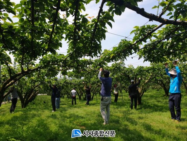 Áö³ 22ÀÏ °Ç¼³°ú Á÷¿ø 10¸íÀº ¹ý¼º¸é ¿ë¼º¸®¿¡¼ ¹è³ª¹« °ú½Ç ¼Ô±â ÀÛ¾÷¿¡ Âü¿©ÇØ ±¸½½¶¡À» È긮±âµµ Çß´Ù. À̳¯ Àϼյ½±â Áö¿øÀ» ¹ÞÀº ³ó¾÷ÀÎÀº ¡°¿ÃÇØ Äڷγª19·Î ÀηÂÀ» ±¸Çϱ⵵ Èûµé°í ÀΰǺñ ºÎ´ãµµ ¸¸¸¸Ä¡ ¾Ê¾Æ °ÆÁ¤ÀÌ ¸¹¾Ò´Âµ¥ ÀÌ·¸°Ô °ø¹«¿ø ¹× À¯°ü±â°ü¿¡¼ ÀϼհÆÁ¤À» ´ú¾îÁÖ¾î °ü³» ¿µ¼¼³ó°¡¿¡ Å« µµ¿òÀÌ µÇ°í ÀÖ´Ù¡±¸ç °í¸¶¿òÀ» ÀüÇß´Ù.