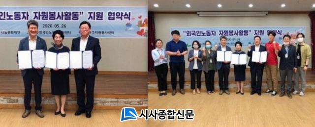 [½Ã»çÁ¾ÇսŹ® = ¿À½ÂÅà ±âÀÚ] ±¤Áֿܱ¹Àγ뵿ÀÚÁö¿ø¼¾ÅÍ(¼¾ÅÍÀå ¿ì¸¸¼±)´Â ±¤»ê±¸ÀÚ¿øºÀ»ç¼¾ÅÍ(¼ÒÀå ¹Ú»óÈñ)¿Í Åõ°Ô´õ±¤»ê³ª´®¹®ÈÀç´Ü(»óÀÓÀ§¿øÀå ÀÌÇý¼÷)Àº ¿Ü±¹Àγ뵿ÀÚ ÀÚ¿øºÀ»çȰµ¿ Áö¿øÀ» À§ÇÑ ¾÷¹«Çù¾àÀ» ü°áÇß´Ù.
