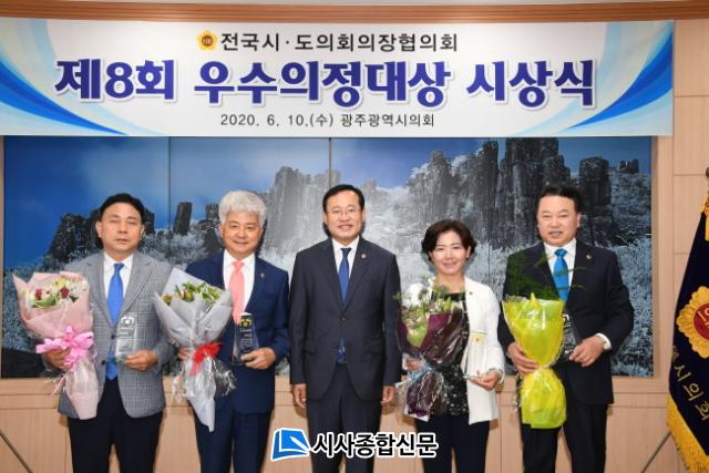 ½Ã»ó½ÄÀº 10ÀÏ(¼ö) ±¤ÁÖ±¤¿ª½ÃÀÇȸ ¿¸°½Ã¹ÎȦ¿¡¼ ÀÚüÀûÀ¸·Î ¿·È´Ù.¡®¿ì¼öÀÇÁ¤ ´ë»ó¡¯Àº Àü±¹ ½ÃµµÀÇȸ ÀÇ¿øµéÀÌ ÆîÄ£ ¿ì¼öÇÑ ÀÇÁ¤È°µ¿À» ¹ß±¼․ÀüÆÄÇÏ¿© ÀÇÁ¤ ¿ª·®À» ³ôÀ̱â À§ÇØ Á¦Á¤µÈ »óÀÌ´Ù. 1³â µ¿¾È ÁÖ¹ÎÀÇ »îÀÇ Áú Çâ»ó°ú ½ÃÁ¤ Çö¾È¿¡ ´ëÇÑ ÁýÇàºÎ °ßÁ¦ µî Áö¿ª ¹ßÀü¿¡ ±â¿©ÇÑ °øÀÌ Å« ÀÇ¿ø¿¡°Ô ¼ö¿©µÈ´Ù.