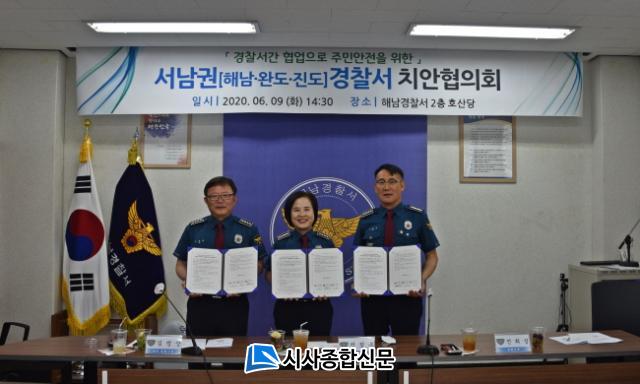 [½Ã»çÁ¾ÇսŹ® = ÀÌÁ¤¿¬ ±âÀÚ] ÇØ³²°æÂû¼(¼Àå ÁøÈñ¼·)´Â Áö³ 9ÀÏ ÇØ³², ¿Ïµµ(¼Àå ±è¹ü»ó), Áøµµ(¼Àå ÁøÁ¡¿Á)°æÂû¼Àå ¹× °¢ °æÂû¼ ±â´Éº° °úÀå µî 20¸íÀÌ Âü¼®ÇÑ °¡¿îµ¥, ±º¹ÎÀÇ ¾ÈÀü È®º¸¿Í Ä¡¾È¼ºñ½º ǰÁú Çâ»óÀ» À§ÇÑ Ä¡¾ÈÇùÀÇȸ¸¦ °³ÃÖÇß´Ù.