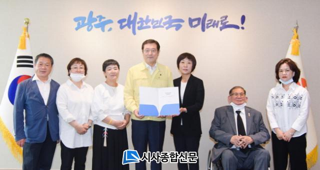 À̿뼷 ½ÃÀå°ú ±¤ÁÖÀå¾ÖÀÎºÎ¸ð¿¬´ë ±èÀ¯¼± ȸÀå, ±è¿ë¸ñ Àå¾ÖÀÎÂ÷º°Ã¶Æó¿¬´ëȸÀå, ÃÖ¼öÁ¤ ºÎ¸ð¿¬´ë ºÎȸÀå, Á¤¼øÀÓ ºÏ±¸ºÎ¸ð¿¬´ëÁöȸÀå, ±è¹Ì¶õ ºÎ¸ð¿¬´ë ¹ýÀÎÀÌ»ç µîÀº 11ÀÏ ¿ÀÀü ½Ãû Á¢°ß½Ç¿¡¼ °£´ãȸ¸¦ °¡Á³´Ù.