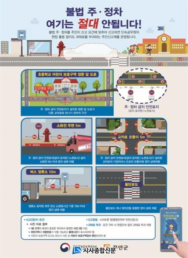 ¹«¾È±ºÀº ÇöÀç 4´ë ºÒ¹ýÁÖÁ¤Â÷ ±ÝÁö±¸¿ª(¡ã¼ÒÈÀü ÁÖº¯ 5mÀ̳» ¡ã±³Â÷·Î¸ðÅüÀÌ 5mÀ̳» ¡ã¹ö½º½Â°Àå 10mÀ̳» ¡ãȾ´Üº¸µµ À§ µî)Àº 1ºÐ °£°ÝÀ¸·Î »çÁøÀ» 2Àå ÀÌ»ó Âï¾î¼ ½Å°íµÈ °Ç¿¡ ´ëÇØ ºÒ¹ýÁÖÁ¤Â÷ °úÅ·Ḧ ºÎ°úÇϰí ÀÖÀ¸¸ç, À̸¦ ÃʵîÇб³ ¾Õ ¾î¸°À̺¸È£±¸¿ª±îÁö È®´ëÇÑ´Ù´Â ¹æÄ§ÀÌ´Ù.