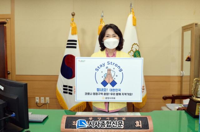 [½Ã»çÁ¾ÇսŹ® = Àå¹Î±Ô ±âÀÚ] ±¤¾ç½ÃÀÇȸ ±è¼ºÈñ ÀÇÀåÀº Áö³ 16ÀÏ Á¤Çöº¹ ±¤¾ç½ÃÀåÀÇ Áö¸ñÀ» ¹Þ¾Æ Äڷγª19 À§±â¸¦ À̰ܳ»ÀÚ´Â ¡®½ºÅ×ÀÌ ½ºÆ®·Õ(Stay Strong, °ÇÏ°Ô ¹öƼÀÚ)¡¯ Ä·ÆäÀο¡ µ¿ÂüÇß´Ù.