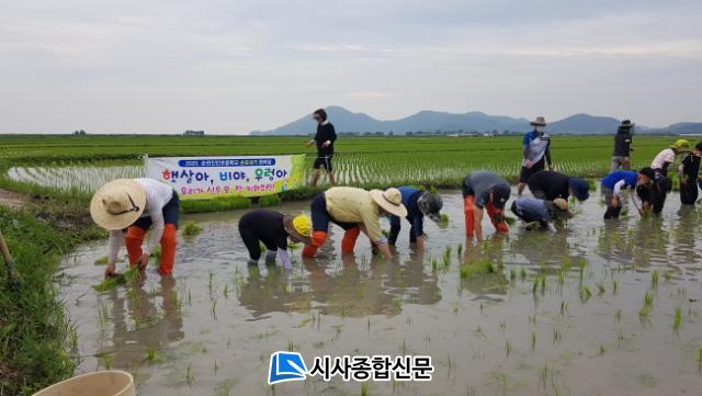 ¿ÃÇØ´Â Äڷγª19 À§±â¸¦ ÇÔ²² ±Øº¹ÇÏÀÚ´Â ÃëÁö·Î Çã¼® ¼øÃµ½ÃÀå°ú À̱æÈÆ ¼øÃµ±³À°ÀåÀÌ ¼Õ¸ð³»±â¿¡ ÇÔ²² Âü¿©Çؼ ´õ¿í ¶æ±íÀº Çà»ç°¡ µÇ¾ú´Ù.