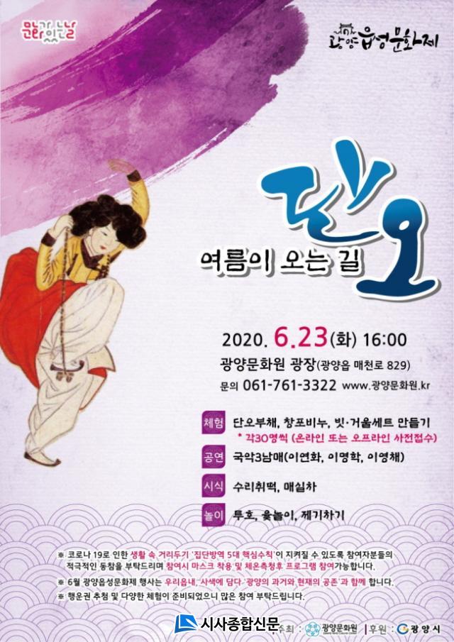 | ±¤¾ç½Ã, À¾¼º¹®ÈÁ¦ ¡®¿©¸§ÀÌ ¿À´Â ±æ ´Ü¿À¡¯ °³ÃÖ ¿À´Â 23ÀÏ ±¤¾ç¹®È¿ø ±¤Àå¿¡¼ ´Ü¿À¼¼½Ãdz¼Ó ÁÖÁ¦ üÇè, ½Ã½Ä, ³îÀÌ µî ÁøÇà