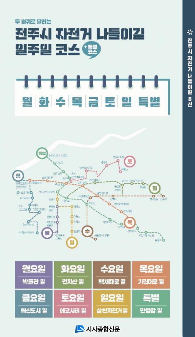 ÀüÁֽô Áö¿ªÀ» ´ëÇ¥ÇÏ´Â ÀÚÀü°Å±æÀ» ¼Ò°³ÇÏ´Â ·¹ÀúÇü ÀÚÀü°ÅÁöµµÀÎ ¡®µÎ¹ÙÄû·Î ´Þ¸®´Â ÀüÁֽà ÀÚÀü°Å ³ªµéÀ̱æ 8¼±¡¯À» Á¦ÀÛ, ¹èºÎÇÑ´Ù°í 23ÀÏ ¹àÇû´Ù. ÀÌ´Â ÀÚÀü°Å À̿빮ÈÀÇ È®»êÀ» µ½°í ÀÚÀü°Å±æÀ» °ü±¤ÀÚ¿øÈÇϱâ À§Çؼ´Ù.