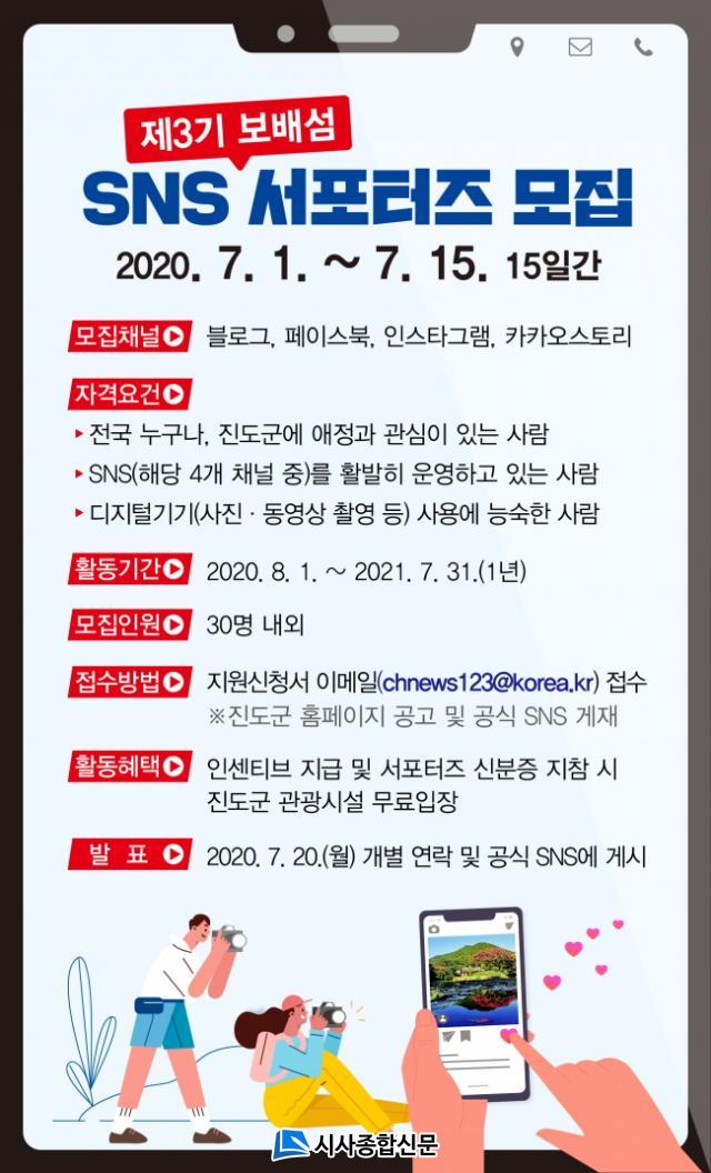 2ÀÏ Áøµµ±º¿¡ µû¸£¸é °ü½É°ú ¿Á¤À¸·Î ¶Ù´Â SNS È«º¸´ë»ç·Î º¸¹è¼¶ Áøµµ±ºÀÇ µ¶Æ¯ÇÑ ¸Å·ÂÀ» ÀÎÅÍ³Ý»ó¿¡ ³Î¸® ¾Ë·Á ÁÙ ¡®Á¦3±â º¸¹è¼¶ SNS ¼Æ÷ÅÍÁ¸¦ 30¿©¸í ³»¿Ü·Î ¸ðÁýÇÑ´Ù.