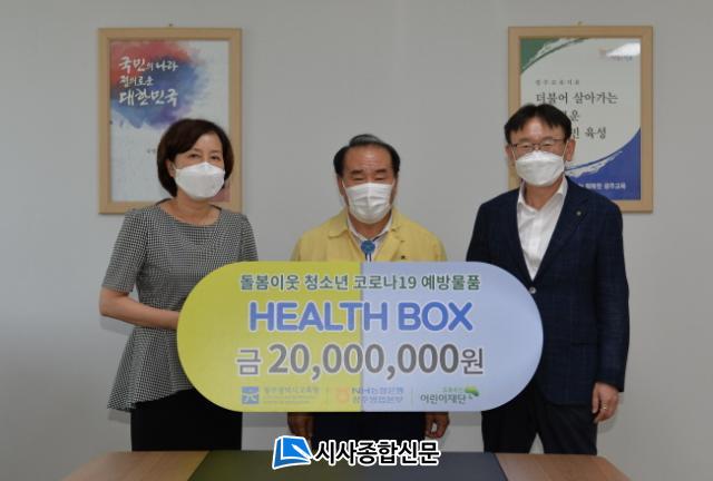 NH³óÇùÀºÇà ±¤ÁÖ¿µ¾÷º»ºÎÀÇ À̹ø ¡®°Ç°²Ù·¯¹Ì(Health Box)¡¯ Áö¿øÀº ¡®The ÇູÇÑ µ¿Ç࡯ »ç¾÷ÀÇ ÀÏȯÀ¸·Î ÀÌ·ïÁ³´Ù. ½Ã±³À°Ã»Àº ü¿Â°è¡¤¸¶½ºÅ©¡¤ºñŸ¹Î µîÀ¸·Î ±¸¼ºµÈ ¡®°Ç°²Ù·¯¹Ì(Health Box)¡¯¸¦ °ü³» ÁßÇб³ Àú¼Òµæ¡¤Ãë¾à°èÃþ Çлý 200¸í¿¡°Ô Áö¿øÇÒ ¿¹Á¤ÀÌ´Ù.