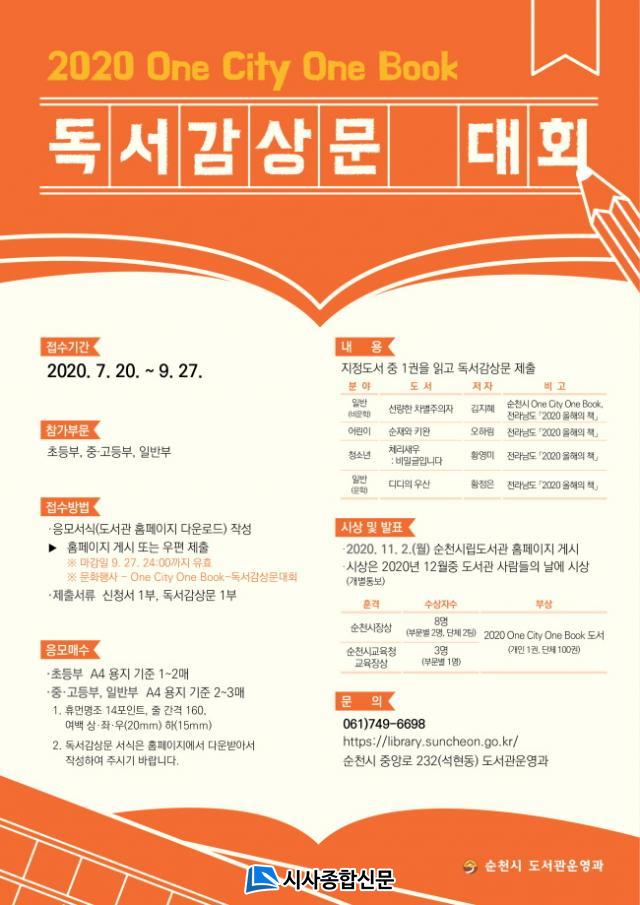 One City One BookÀº ¼øÃµ½Ã¹Î ¸ðµÎ°¡ ÇÑ ±ÇÀÇ Ã¥À» Àаí, Åä·ÐÇϸç, ¼ÒÅëÇÏÀÚ´Â ÃëÁöÀÇ °øµ¿Ã¼ µ¶¼¿îµ¿À¸·Î 2004³âºÎÅÍ ½ÃÀ۵ǾúÀ¸¸ç, ¿ÃÇØ´Â µ¶¼°¨»ó¹® ´ëȸ¸¦ °³ÃÖÇÑ´Ù.