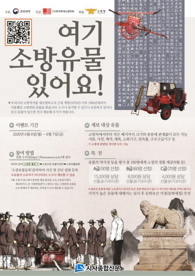 À̹ø À̺¥Æ®´Â ¹®ÈÀçûÀÇ ¼Ò¹æ¾ÈÀüºÐ¾ß ±ÙÇö´ë ¹®ÈÀ¯»ê ¸ñ·ÏÈ »ç¾÷°ú ¿¬°èÇØ¼ ¼Ò¹æ°ü·Ã À¯¹°À» ã¾Æ ¿ª»ç¸¦ ÀçÁ¶¸íÇϱâ À§ÇÑ °ÍÀÌ´Ù. ´ë»óÀ¯¹°Àº ¼Ò¹æÂ÷¿¡¼ºÎÅÍ ÀÛÀº ¹èÁö±îÁö Å©±â¿Í Á¾·ù¿¡ °ü°è¾øÀÌ ¼Ò¹æ°ú °ü·ÃµÈ °ÍÀÌ¸é ¸ðµÎ °¡´ÉÇÏ´Ù.
