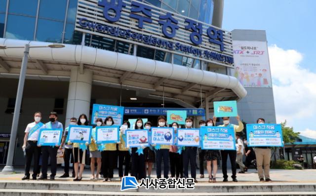 [½Ã»çÁ¾ÇսŹ® = ¿À½ÂÅà ±âÀÚ] ±¤ÁÖ±¤¿ª½Ã´Â 16ÀÏ ±¤ÁÖ¼ÛÁ¤¿ª¿¡¼ ½Ã °ø¹«¿ø, ¿ª»ç Á÷¿ø µî 40¿©¸íÀÌ Âü¿©ÇÑ °¡¿îµ¥ ¡®¸¶½ºÅ© Âø¿ë »ýÈ°È È«º¸È°µ¿¡¯À» Àü°³Çß´Ù.