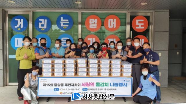 Áß¾Óµ¿ ÁÖ¹ÎÀÚġȸ¿Í ¸¶Áß¹°º¸ÀåÇùÀÇü°¡ Âü¿©ÇÑ À̹ø Çà»ç´Â °Ü¿ï ±èÀå ±èÄ¡°¡ ¶³¾îÁö°í ¿©¸§¿¡ ¸ÔÀ» ±èÄ¡°¡ ºÎÁ·ÇÑ ¾î·Á¿î ÀÌ¿ôÀ» À§ÇØ »ç¶ûÀÇ ¹°±èÄ¡¸¦ Àü´ÞÇÏ¿© Áֹεé·ÎºÎÅÍ È£ÆòÀ» ¹Þ°í ÀÖ´Ù.