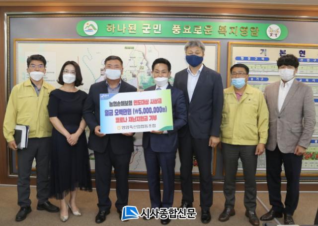 [½Ã»çÁ¾ÇսŹ® = Á¤À±±Ô ±âÀÚ] ¿µ¾ÏÃàÇù(Á¶ÇÕÀå À̸ÍÁ¾)Àº 28ÀÏ Äڷγª19·Î ÀÎÇÑ Áö¿ª°æÁ¦Ä§Ã¼·Î ¾î·Á¿òÀ» °Þ°í ÀÖ´Â Ãë¾à°èÃþ Áö¿øÀ» À§ÇØ ¼º±Ý 500¸¸¿øÀ» Àü³²»çȸº¹Áö°øµ¿¸ð±Ýȸ¸¦ ÅëÇØ ¿µ¾Ï±º¿¡ ÁöÁ¤±âŹ Çß´Ù.