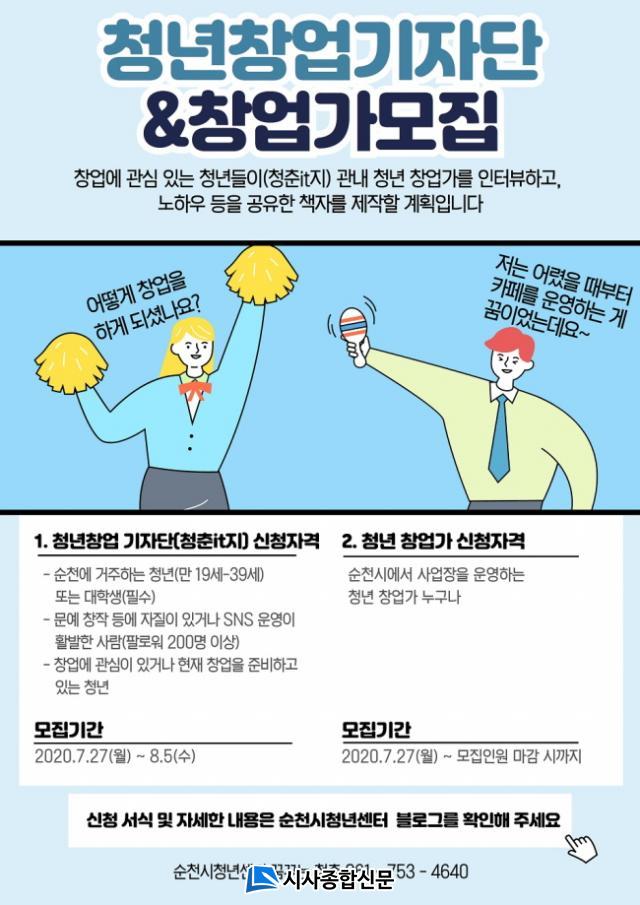 ¼øÃµÀÇ Ã»³ââ¾÷°¡¸¦ ÀÎÅͺäÇÏ¿© ¿¹ºñ û³ââ¾÷°¡¿¡°Ô ³ëÇϿ츦 Àü¼öÇϰí È«º¸ÇÒ Ã»³ââ¾÷±âÀÚ´Ü ¡®Ã»ÃáitÁö¡¯´Â ±Û¾²±â¿¡ ¼ÒÁúÀÌ ÀÖ°í â¾÷¿¡ °ü½ÉÀÌ ¸¹À¸¸ç SNS¿î¿µÀÌ È°¹ßÇÑ ¼øÃµ û³â(¸¸19~39¼¼)À̸é Âü¿©°¡ °¡´ÉÇÏ´Ù.