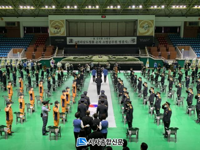 ÇÑÆí, ±è¿µ·Ï Àü¶ó³²µµÁö»ç´Â ¡°¿ë°¨Çß´ø °í ±è±¹È¯ ¼Ò¹æÀåÀÇ Çå½Å°ú Èñ»ýÀÌ ÇêµÇÁö ¾Êµµ·Ï µµ¹Î°ú ¼Ò¹æ°üµéÀÇ ¾ÈÀü, Çູ¿¡ ´õ¿í Ã¥ÀÓ°¨À» °®°Ú´Ù¡±¸ç ¡°°¡Á·ºÐµéÀÌ ½½ÇÄÀ» µó°í Àü³²¼Ò¹æ°¡Á·ÀÓÀ» ÀÚ¶û½º·´°Ô ¿©±æ ¼ö ÀÖµµ·Ï º¸ÈÆ¿¡µµ ÃÖ¼±À» ´ÙÇϰڴ١±°í ¸»Çß´Ù