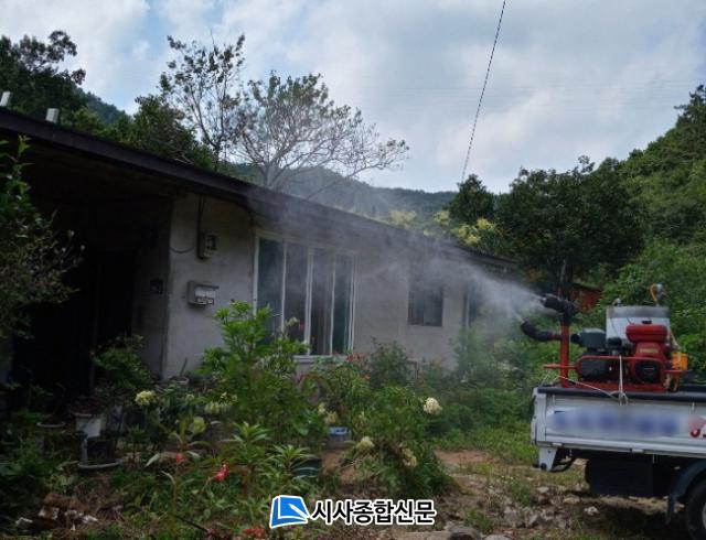 ÇàÁ¤º¹Áö¼¾ÅÍ´Â Áö³ 14ÀÏ ¹æ¿ª Â÷·®°ú ÈÞ´ë¿ë ¼Òµ¶±â¸¦ ÀÌ¿ëÇØ ħ¼öÇÇÇØ ÁÖÅà ½Ç³» »ì±Õ ¼Òµ¶Àº ¹°·Ð Áý ¿ÜºÎ¿Í ¸¶À» ¿Ü°û±îÁö »ìÃæ ¼Òµ¶À» Çß´Ù.