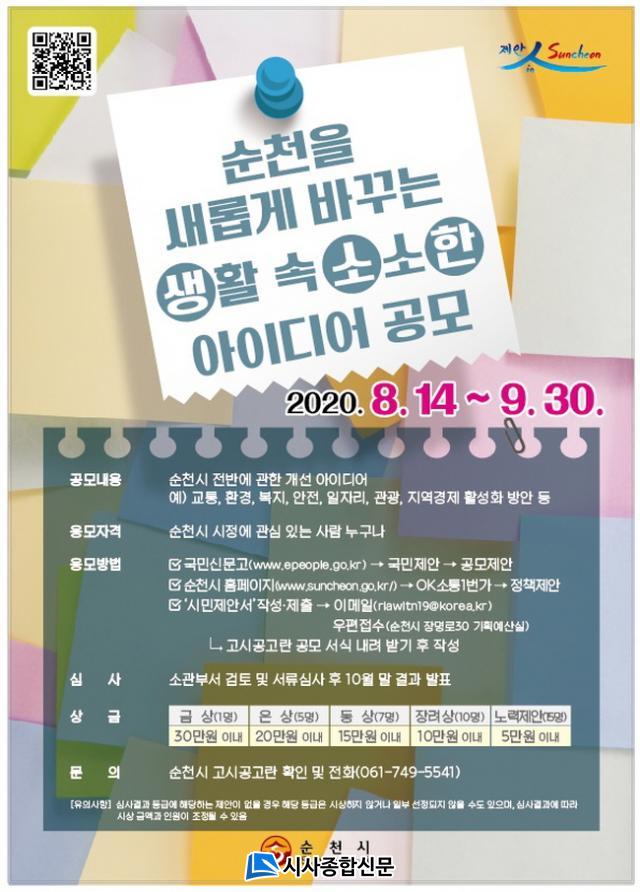 Âü¿©´ë»óÀº ¼øÃµ½Ã¿¡ °ÅÁÖÇÏ´Â ½Ã¹ÎÀÌ¸é ´©±¸³ª °¡´ÉÇϰí 2ÀÎ ÀÌ»ó °øµ¿À¸·Îµµ Âü¿©ÇÒ ¼ö ÀÖ´Ù. °ø¸ð±â°£Àº ¿À´Â 9¿ù 30ÀϱîÁöÀ̸ç Á¢¼ö´Â ¼øÃµ½Ã ȨÆäÀÌÁö¿¡¼ Á¦¾È¼¸¦ ³»·Á ¹Þ¾Æ ÀüÀÚ¿ìÆíÀ¸·Î Á¦ÃâÇϰųª ±¹¹Î½Å¹®°í °ø¸ðÁ¦¾ÈÀ¸·Î Á¢¼öÇÏ¸é µÈ´Ù.
