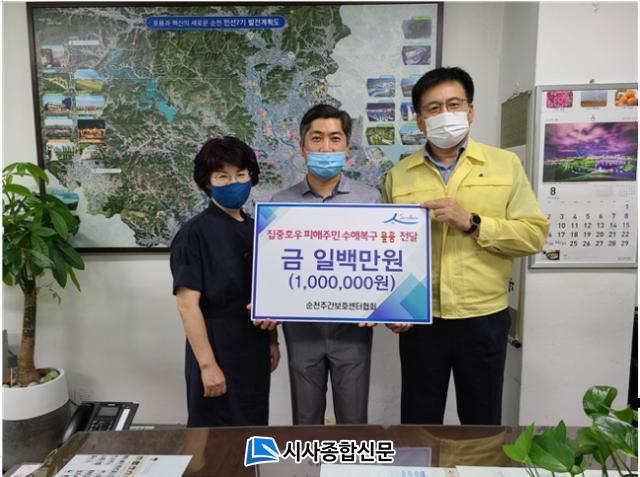 [½Ã»çÁ¾ÇսŹ® = Àå¹Î±Ô ±âÀÚ] ¼øÃµÁÖ°£º¸È£¼¾ÅÍÇùȸ(ȸÀå À§Á¾¿í)´Â Áö³ 20ÀÏ ¼øÃµ ȲÀüÁö¿ªÀÇ ¼öÇØº¹±¸ ÀÌÀç¹ÎÀ» À§ÇØ 100¸¸¿ø »ó´çÀÇ ¹°Ç°À» ¼øÃµ½Ã¿¡ ±âŹÇÏ¿´´Ù.