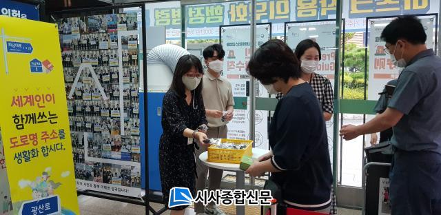 [½Ã»çÁ¾ÇսŹ® = ¿À½ÂÅà ±âÀÚ] ±¤ÁÖ ±¤»ê±¸(±¸Ã»Àå ±è»ïÈ£)°¡ Äڷγª19 È®»ê ¹æÁö¿Í µµ·Î¸íÁÖ¼Ò È«º¸¸¦ À§ÇØ ¸¶½ºÅ© ¸ñ°ÉÀÌ 5,000°³¸¦ Á¦ÀÛÇØ 2ÀϺÎÅÍ ±¸Ã» ÀÔ±¸ µî¿¡¼ ½Ã¹Îµé¿¡°Ô ³ª´²ÁÖ°í ÀÖ´Ù.