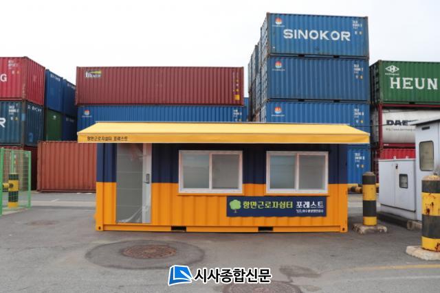Æ÷·¹½ºÆ®´Â ȤÇѱ⳪ Ȥ¼±â ½Ã ±Ù·ÎÀÚµéÀÌ ¾ÈÀüÇÏ°Ô ´ëÇÇÇØ ÈÞ½ÄÀ» ÃëÇÒ ¼ö ÀÖµµ·Ï 20ÇÇÆ®(ft) ÄÁÅ×À̳ʸ¦ °³Á¶ÇØ Á¦ÀÛÇßÀ¸¸ç, ±Ù·ÎÀÚµéÀÇ À̵¿ÆíÀǸ¦ °í·ÁÇØ ºÎµÎ ³» ÀÛ¾÷Àå °¡±îÀÌ¿¡ ¼³Ä¡Çß´Ù.