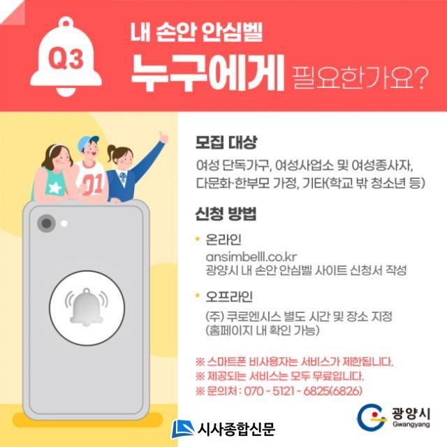 ±¤¾ç½Ã¿¡¼´Â ÃÖ±Ù 3³â°£ ¿©¼º¡¤Ã»¼Ò³â ´ë»ó ¹üÁË ¹ß»ý Æò±Õ °Ç¼ö°¡ 550¿© °Ç¿¡ À̸£´Â µî ³¯·Î Áõ°¡ÇÏ´Â ¹üÁË¿¡ ´ëÇÑ ½Ã¹ÎµéÀÇ ºÒ¾È°¨ ÇØ¼Ò¸¦ À§ÇØ ¾È½Éº§ 7,000¿© ´ë¸¦ ÇØ´ç ½ÅûÀÚ¿¡°Ô ¹«»óÀ¸·Î º¸±ÞÇÒ ¿¹Á¤ÀÌ´Ù.