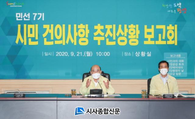 Á¤Çöº¹ ±¤¾ç½ÃÀåÀÇ ÁÖÀç·Î ÁøÇàµÈ º¸°íȸ´Â ±¹¡¤¼ÒÀå, ºÎ¼Àå µî 45¸íÀÇ °£ºÎ°ø¹«¿øÀÌ Âü¼®ÇÑ °¡¿îµ¥ ¹Î¼±7±â ½ÃÀÛÁ¡ÀÎ 2018³â 7¿ùºÎÅÍ ÇöÀç±îÁö ½Ã¹ÎµéÀÌ Á¦¾ÈÇÑ 2,221°ÇÀÇ °ÇÀÇ»çÇ׿¡ ´ëÇØ ÃßÁø»óȲÀ» Á¡°ËÇÏ°í ¹®Á¦Á¡¿¡ ´ëÇÑ ½Å¼ÓÇÑ ÇØ°á¹æ¾ÈÀ» ¸ð»öÇϱâ À§ÇØ ¸¶·ÃµÆ´Ù.