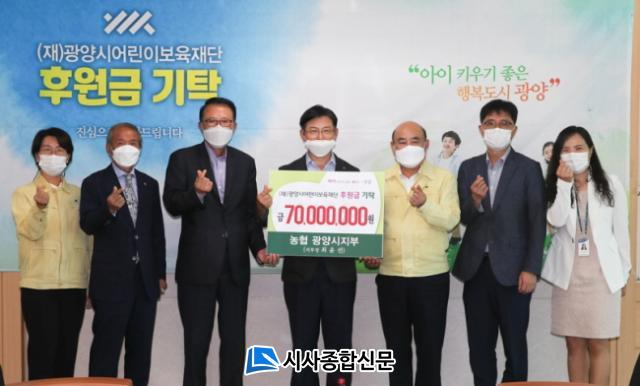 [½Ã»çÁ¾ÇսŹ® = Àå¹Î±Ô ±âÀÚ] ³óÇù ±¤¾ç½ÃÁöºÎ(ÁöºÎÀå ÃÖÀ±¼±)°¡ (Àç)±¤¾ç½Ã¾î¸°À̺¸À°Àç´Ü(ÀÌ»çÀå ȲÀç¿ì)¿¡ Äڷγª19 À§±â±Øº¹°ú ¾ÆÀÌŰ¿ì±â ÁÁÀº Çູµµ½Ã ±¤¾çÀ» À§ÇØ ¼ÒÁßÇÑ ÈÄ¿ø±ÝÀ» ±âŹÇß´Ù.