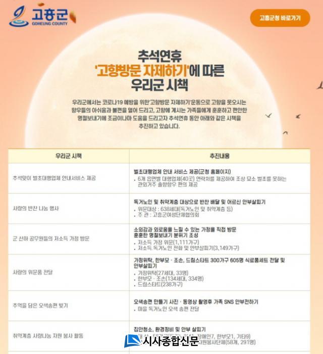 °íÈﱺ º¸°Ç¼Ò¿¡¼´Â Ãß¼®¿¬ÈÞ ÀÌ»öÀûÀÎ ¸íÀý ºÐÀ§±â¸¦ À§ÇØ ¿À»ö ¼ÛÆí ¸¸µé±â »çÁø․µ¿¿µ»óÀ» ÃÔ¿µÇÏ¿© °¡Á·¿¡°Ô SNS·Î ¾ÈºÎ¸¦ ÀüÇÑ´Ù. ¶Ç, °íÇâ Á¤Ã븦 Àü´ÞÇϰíÀÚ ¿µ»óÀ» Á¦ÀÛÇÏ¿© À¯Æ©ºê¿¡ °Ô½ÃÇÏ°í °íÇâ¼Ò½ÄÀ» ÀüÇϰíÀÚ ÆäÀ̽ººÏ, ÀνºÅ¸±×·¥, īī¿À½ºÅ丮 µî SNS¸¦ Àû±Ø Ȱ¿ëÇÒ °èȹÀÌ´Ù.