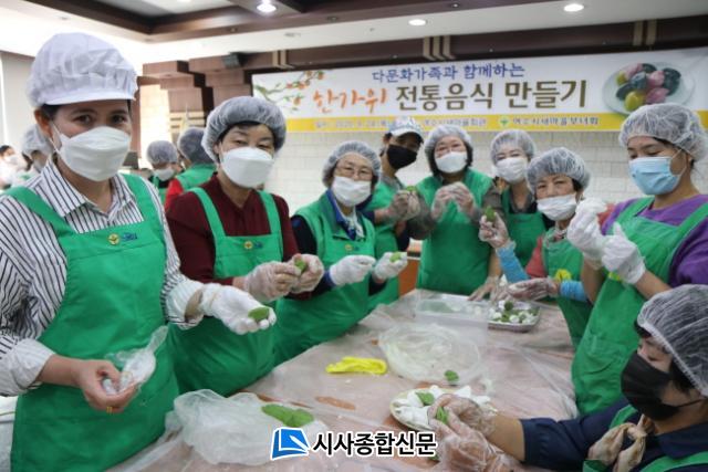 À̳¯ Çà»ç´Â ´Ù°¡¿À´Â Ãß¼® ¸íÀýÀ» ¾ÕµÎ°í Çѱ¹ ÀüÅëÀ½½Ä ¸¸µé±â¿¡ ¾î·Á¿òÀ» °Þ°í ÀÖ´Â ´Ù¹®È°¡Á¤ ¿©¼ºÀ» ´ë»óÀ¸·Î ¼ÛÆí°ú Àü µî ÀüÅëÀ½½ÄÀ» Á÷Á¢ ¸¸µé¾îº¸¸é¼ Çѱ¹ÀÇ À½½Ä¹®È¸¦ üÇèÇÏ´Â Çà»ç·Î Äڷγª19 °¨¿°À» ¿ì·ÁÇØ ¹ß¿Ã¼Å©, ¸¶½ºÅ© Âø¿ë µî »çȸÀû °Å¸®µÎ±â Á¶Ä¡»çÇ׿¡ µû¶ó ÃÖ¼ÒÇÑÀÇ Àοø¸¸ Âü¼®ÇÏ¿© ÁøÇàµÇ¾ú´Ù.