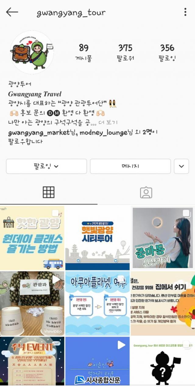±¤¾ç½Ã´Â Áö³ 9¿ùºÎÅÍ ±¤¾ç°ü±¤ °ø½ÄSNS ä³Î, ÀνºÅ¸±×·¥ ¡®±¤¾çÅõ¾î(gwangyang_tour)¡¯¸¦ Á¤½Ä °³¼³, ¿î¿µÇÑ´Ù°í ¹àÇû´Ù.