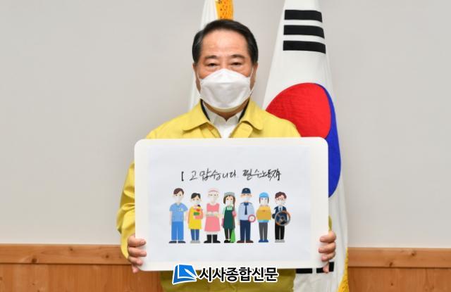 | ÃÖÇü½Ä ´ã¾ç±º¼ö, °í¸¿½À´Ï´Ù, Çʼö³ëµ¿ÀÚ ÀÀ¿ø Ä·ÆäÀÎ µ¿Âü "±æ¾îÁö´Â Äڷγª19·Î »óȲ ¼Ó¿¡¼µµ ÇöÀå¿¡¼ ÃÖ¼±À» ´ÙÇØÁֽôÂ