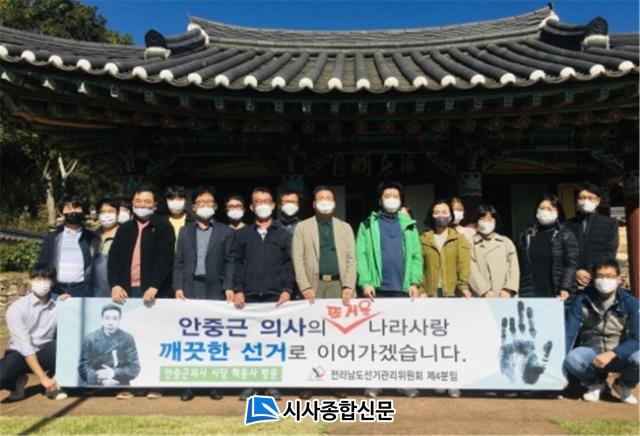 [½Ã»çÁ¾ÇսŹ® = ¿À½ÂÅà ±âÀÚ] Àü¶ó³²µµ¼±°Å°ü¸®À§¿øÈ¸ 4ºÐÀÓ(ÀåÈﱺ, °Áø±º, ¿Ïµµ±º, ÇØ³²±º, Áøµµ±º)¼Ò¼Ó Á÷¿ø 33¸íÀº 10¿ù 26ÀÏ 10½Ã Àü±¹ À¯ÀÏÀÇ ¾ÈÁß±Ù ÀÇ»ç Ã߸ð»ç´çÀÎ ÇØµ¿»ç¸¦ ¹æ¹®ÇÏ¿© Âü¹èÇÏ´Â Çà»ç¸¦ °¡Á³´Ù°í ¹àÇû´Ù.