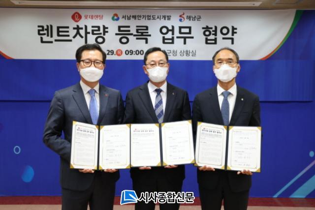 À̳¯ Çù¾à½Ä¿¡´Â ¸íÇö°ü ÇØ³²±º¼ö¿Í À̽¿¬ ·Ôµ¥·»Å» °æ¿µ°ü¸®º»ºÎÀå, Á¤°Ç±â¼³²Çؾȱâ¾÷µµ½Ã°³¹ß(ÁÖ) ºÎ»çÀåÀÌ Âü¼®ÇØ ·»Æ® Â÷·® µî·ÏÀ» À§ÇÑ Çù·Â ü°è¸¦ ±¸ÃàÇÏ°í »óÈ£ Áö¿øÇϱâ·Î ¾à¼ÓÇß´Ù.