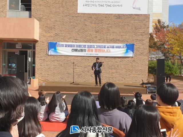 ÇϹݱ⠱âȹ»ç¾÷ ¡®Ã£¾Æ°¡´Â Èú¸µ½ºÄð ÄܼƮ¡¯ÀÇ ÀÏȯÀ¸·Î ÁøÇàÇÑ À̹ø °ø¿¬Àº Äڷγª19 Àå±âÈ·Î À§ÃàµÅÀÖ´Â Çб³ÇöÀå¿¡ À½¾ÇÀ¸·Î Ȱ·ÂÀ» ºÒ¾î³Ö¾î ¼ö´ÉÀ» ¾ÕµÎ°í ±äÀåÇϸç Çо÷¿¡ ¸ôµÎÇϰí ÀÖ´Â °í3ÇлýµéÀ» À§·ÎÇÏ°í °Ý·ÁÇϱâ À§ÇØ ¸¶·ÃµÆ´Ù.