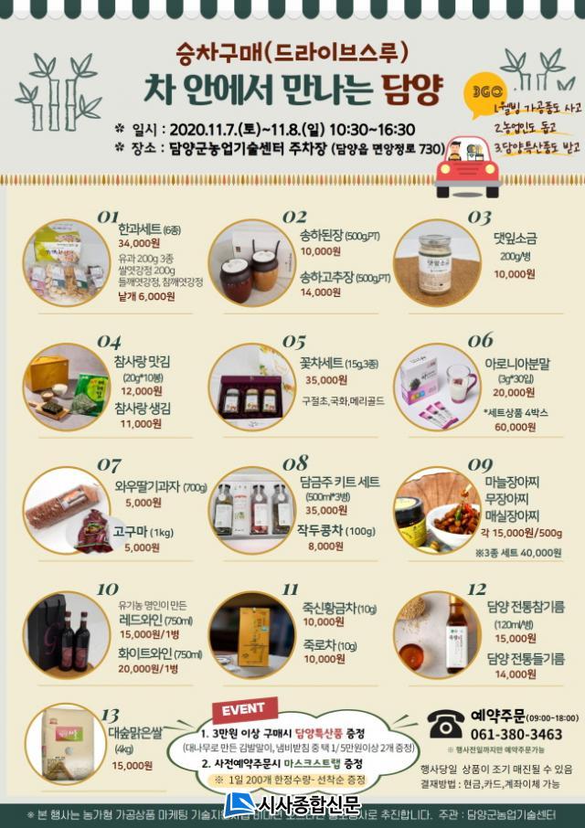 ¼ÒºñÀÚ´Â È«º¸¿ëÀü´ÜÁö¿¡ ½Ç¸° »óǰµéÀ» »çÀü¿¹¾àÇÏ¿© Çà»ç´çÀÏ ´ã¾ç±º ³ó¾÷ÀÎÀÌ Á÷Á¢ ¸¸µç °¡°ø »óǰÀ» ´«À¸·Î È®ÀÎ ÈÄ Â÷·®¿¡ ź ä·Î Äڷγª19 °ÆÁ¤ ¾øÀÌ ¾ÈÀüÇÏ°Ô ¹ÞÀ» ¼ö ÀÖ´Ù. 3¸¸¿ø ÀÌ»ó ±¸¸Å ½Ã ´ã¾çƯ»êǰÀ» ÁõÁ¤Çϸç, »çÀü¿¹¾à ÁÖ¹®½Ã¿¡´Â ¸¶½ºÅ© ½ºÆ®·¦µµ ÁõÁ¤ÇÑ´Ù. »çÀü¿¹¾àÀº 11¿ù 6ÀϱîÁö °¡´ÉÇÏ´Ù.