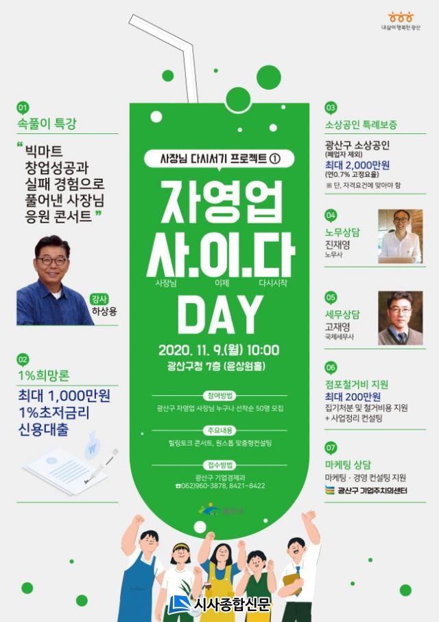 ÀÚ¿µ¾÷ »çÀÌ´Ù µ¥ÀÌÀÇ ¡®»çÀÌ´Ù¡¯´Â ¡®»çÀå´Ô ÀÌÁ¦ ´Ù½Ã ½ÃÀÛ¡¯ÀÇ Áظ». À̹ø Çà»ç´Â Äڷγª ÀÏ»ó½Ã´ë¿¡ ¸ÅÃâ Ç϶ô, Àη °¨Ãà, Æó¾÷ µîÀ» °ÞÀº ÀÚ¿µ¾÷Àڵ鿡°Ô Àü¹®°¡µéÀÌ ÇÊ¿äÇÑ ÄÁ¼³ÆÃÀ» ¿ø½ºÅéÀ¸·Î Á¦°øÇÏ´Â ÀåÀÌ´Ù.
