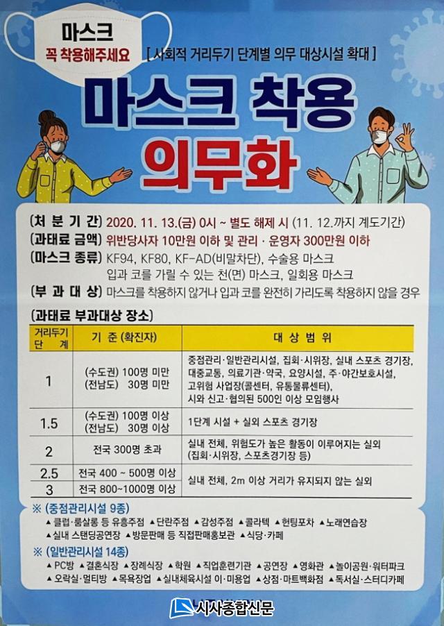 Áýȸ¡¤½ÃÀ§Àå, ½Ç³»½ºÆ÷Ã÷ °æ±âÀå, ´ëÁß±³Åë, ÀÇ·á±â°ü¡¤¾à±¹°ú °¨¿°¿¡ Ãë¾àÇÑ ¿ä¾ç½Ã¼³, ÁÖ¡¤¾ß°£º¸È£½Ã¼³, Äݼ¾ÅÍ, À¯Åë¹°·ù¼¾ÅÍ, ÁöÀÚü¿¡ ½Å°í¡¤ÇùÀÇµÈ 500ÀÎ ÀÌ»ó ¸ðÀÓ¡¤Çà»ç, û»ç µî ±âŸ½Ã¼³ ¶ÇÇÑ »çȸÀû °Å¸®µÎ±â ´Ü°è ±¸ºÐ ¾øÀÌ ¸¶½ºÅ© Âø¿ëÀ» Àǹ«ÈÇϰí ÀÖ´Ù.