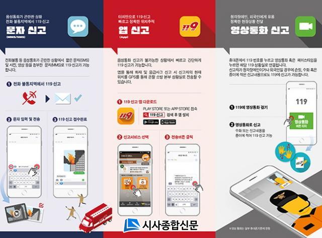 119´Ù¸Åü ½Å°í¼ºñ½º´Â ÀüȺÒÅë µî À½¼ºÅëȰ¡ °ï¶õÇÑ »óȲ¿¡¼ÀÇ ÂªÀº ¹®ÀÚ(SMS) ¶Ç´Â »çÁø, ¿µ»ó µîÀ» ÷ºÎÇÑ ¹®ÀÚ(MMS) ½Å°í, 119½Å°í ¾Û(App)À» ÅëÇÑ ½Å°í, û°¢Àå¾ÖÀÎ ¹× ¿Ü±¹Àο¡°Ô À¯¿ëÇÑ ¿µ»óÅëÈ ½Å°í·Î ±¸¼ºµÇ¾î ÀÖ´Ù.