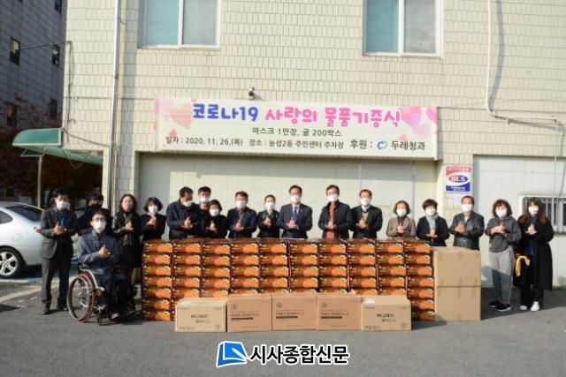 µÎ·¹Ã»°ú(ÁÖ) ÇѼö¿µ ´ëÇ¥´Â ¡°Äڷγª19 Àå±âÈ·Î ¸ðµÎ ¾î·Á¿î ½Ã±â¿¡ µµ¿òÀÌ ÇÊ¿äÇÑ °÷¿¡ ÈûÀÌ µÇ°í ½Í¾î ¸¶½ºÅ©, ±ÖÀ» ±âºÎÇÏ°Ô µÆ´Ù¡±¸ç ¡°Èûµç »ýȰÀ» °Þ°í ÀÖ´Â ÀÌ¿ô¿¡°Ô Á¶±ÝÀ̳ª¸¶ º¸ÅÆÀÌ µÇ±æ ¹Ù¶õ´Ù¡±°í ¸»Çß´Ù.