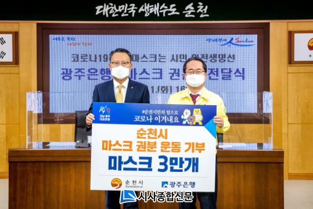 ±¤ÁÖÀºÇàÀº ¼øÃµ½ÃÀÇ ¸¶½ºÅ© ±ÇºÐ ¿îµ¿¿¡ µ¿ÂüÇϰíÀÚ ¼øÃµ½Ãû¿¡ ¸¶½ºÅ© 3¸¸°³¸¦ Àü´ÞÇßÀ¸¸ç, Àü´ÞµÈ ¸¶½ºÅ©´Â ¸¶½ºÅ© Âø¿ë Àǹ«È·Î ±¸ÀÔ ºñ¿ë¿¡ ºÎ´ãÀ» °®´Â ¼øÃµ½Ã¹Î°ú ¼øÃµ½ÃÀÇ ÁÖ¿ä °ü±¤Áö ¹× °ø°øÀå¼Ò, ´ëÁß±³Åë½Ã¼³ µî¿¡ ºñÄ¡ÇÏ¿© Áö¿ª ³» °¨¿° È®»ê ¹æÁö¿¡ »ç¿ëµÉ °èȹÀÌ´Ù.