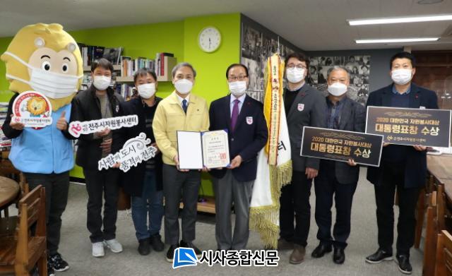 ÀüÁÖ½ÃÀÚ¿øºÀ»ç¼¾ÅÍ(ÀÌ»çÀå ȲÀÇ¿Á)´Â ÇàÁ¤¾ÈÀüºÎ ÁÖ°üÀÇ ¡®2020 ´ëÇѹα¹ ÀÚ¿øºÀ»ç´ë»ó¡¯¿¡¼ Àü±¹ÀÇ ÀÚ¿øºÀ»ç¼¾Åͷδ À¯ÀÏÇÏ°Ô ´ëÅë·É ǥâÀ» ¼ö»óÇß´Ù°í 9ÀÏ ¹àÇû´Ù.