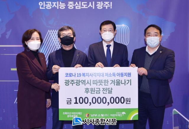 [½Ã»çÁ¾ÇսŹ® = ¿À½ÂÅà ±âÀÚ] ÃÊ·Ï¿ì»ê¾î¸°ÀÌÀç´Ü ±¤ÁÖÁö¿ªº»ºÎ(º»ºÎÀå ±èÀº¿µ)´Â 12¿ù 8ÀÏ(È) ±¤ÁÖ½Ãû¿¡¼ ±¤ÁÖ±¤¿ª½Ã À̿뼷½ÃÀå°ú ³²ºÎ½ºÆ¿(ÁÖ) °í±¤¹Î´ëÇ¥, ±¤ÁÖÈÄ¿øÈ¸ À¯¿µÅÂȸÀåÀÌ Âü¼®ÇÑ °¡¿îµ¥ º¹Áö»ç°¢Áö´ë ´ë»ó ¾Æµ¿À» À§ÇÑ µû¶æÇÑ °Ü¿ï³ª±â ÈÄ¿ø±Ý Àü´Þ½ÄÀ» °¡Á³´Ù.