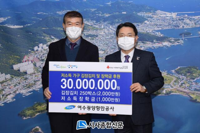 [½Ã»çÁ¾ÇսŹ® = ¿À½ÂÅà ±âÀÚ] ¿©¼ö±¤¾çÇ׸¸°ø»ç(»çÀå Â÷¹Î½Ä)´Â Áö³ 9ÀÏ ¿¬¸»¿¬½Ã ÀÌ¿ô»ç¶û ½Çõ°ú Àú¼Òµæ °¡Á¤À» ÈÄ¿øÀ» À§ÇØ 2,000¸¸ ¿ø »ó´çÀÇ ±èÀå±èÄ¡ 250¹Ú½º¿Í ÀåÇÐ±Ý 1,000¸¸ ¿øÀ» ¿©¼ö½Ã¿¡ Àü´ÞÇß´Ù.