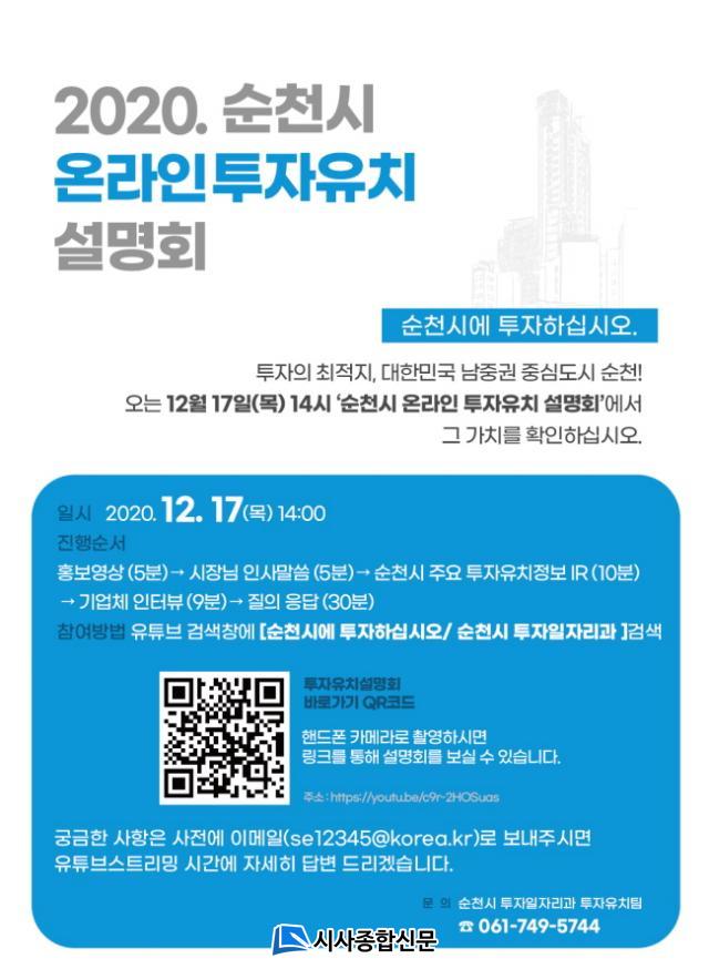 | ¼øÃµ½Ã, ¿Â¶óÀÎ ÅõÀÚÀ¯Ä¡¼³¸íȸ °³ÃÖ À¯Æ®ºê LIVE ¡®¼øÃµ½Ã¿¡ ÅõÀÚÇϽʽÿÀ¡¯·Î 12¿ù 17ÀÏ ¿ÀÈÄ2½Ã¿¡ ÁøÇà