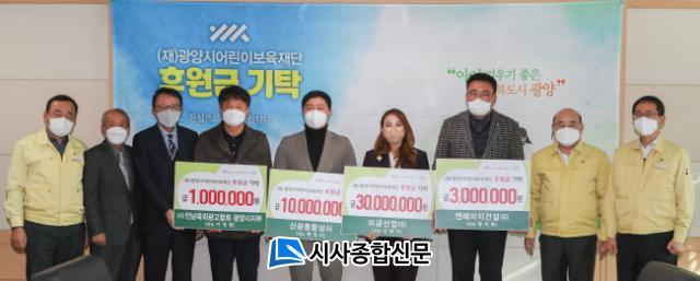 À̳¯ ±âŹ½Ä¿¡´Â ¹Ì±Ý»ê¾÷¢ß(´ëÇ¥ ±èÇý¹Ì)¿¡¼ 3õ¸¸ ¿ø, ½Å±¤Á¾ÇÕ»ó»ç(´ëÇ¥ ¹éÁ¤ÀÚ)¿¡¼ 1õ¸¸ ¿ø, ¿£¿¡ÀÌÄ¡°Ç¼³¢ß(´ëÇ¥ Ȳġȯ)¿¡¼ 3¹é¸¸ ¿ø, (»ç)Àü³²¿Á¿Ü±¤°íÇùȸ ±¤¾ç½ÃÁöºÎ(ȸÀå ÀÌÁ¤Çö)¿¡¼ 1¹é¸¸ ¿ø ÃÑ 4õ4¹é¸¸ ¿øÀ» ±âŹÇß´Ù.